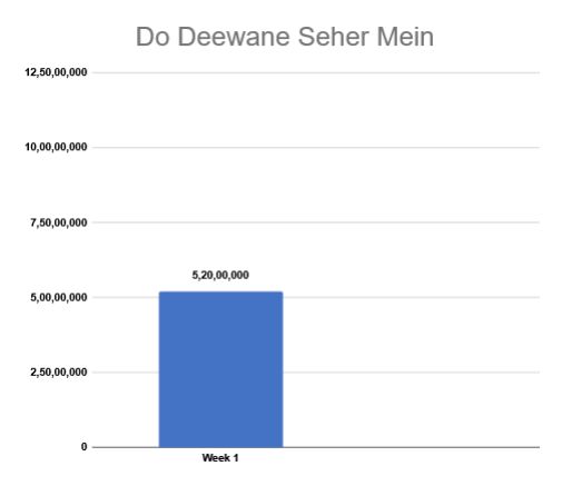 Do Deewane Seher Mein made an ordinary mark in the first week. The first day closed at Rs. 1.15 crore. Collections on Saturday and Sunday were the same at Rs. 1.25 crore each day. Hence the total for the first weekend was Rs. 3.65 crore. Collections on the weekdays were on the lower side: Monday – Rs. 0.50 crore, Tuesday – Rs. 0.40 crore, Wednesday – Rs. 0.35 crore, Thursday – Rs. 0.30 crore. Therefore, the total for the weekdays was Rs. 1.55 crore. In this way, the first week closed at Rs. 5.20 crore.