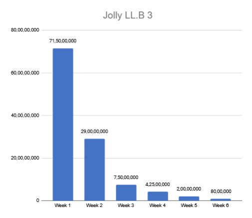 Jolly LL.B 3 did ordinary in 6th week, adding Rs. 0.80 crore to its kitty. Grand total for 6 weeks: Rs. 115.05 crore.
