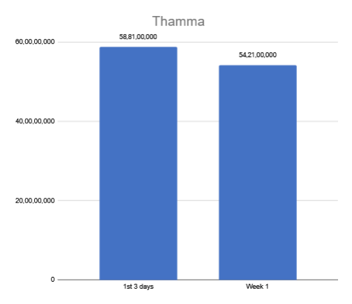 Thamma, after releasing on Tuesday (October 21) owing to Diwali holidays, did well for the first six days till the weekend, but dropped markedly thereafter. Yet, it will comfortably make profits for those associated with it. After netting Rs. 58.81 crore on the first 3 days, it collected Rs. 12.16 crore on Friday. Collections jumped to Rs. 13.40 crore on Saturday, and remained almost the same (Rs. 13.45 crore) on Sunday. Therefore, the total for the 6-day weekend was Rs. 97.82 crore. Collections for the weekdays were as follows: Monday – Rs. 4.10 crore, Tuesday – Rs. 4.70 crore, Wednesday – Rs. 3.40 crore, Thursday – Rs. 3 crore. Hence the total for the weekdays was Rs. 15.20 crore. In this way, the film netted Rs. 113.02 crore in the first 10-day week.