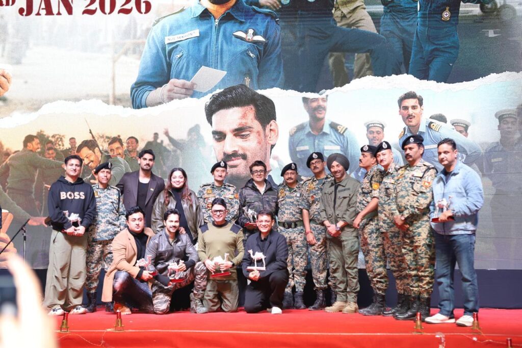 The team expressed heartfelt gratitude to the BSF and Army for their presence, warmth, and unwavering service, acknowledging the honour of sharing the film’s music in such a powerful and meaningful setting. BSF officers and jawans sang the Ghar kab aaoge song and also performed a crucial scene from the film, to entertain the guests and the film’s unit.