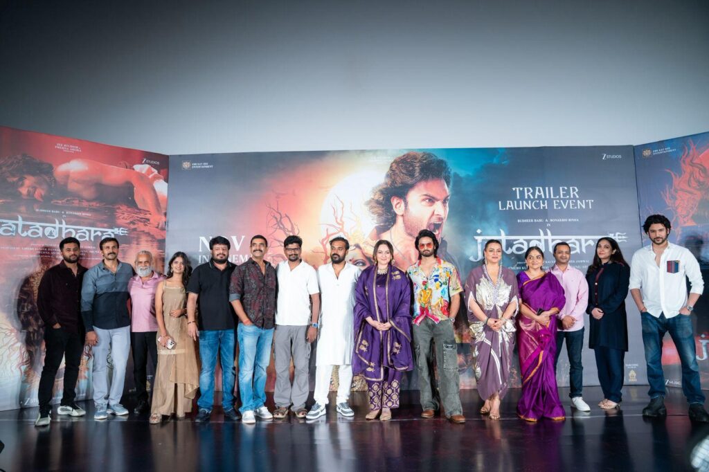 Producers Umesh Kumar Bansal (Zee Studios), Shivin Narang, Aruna Agarwal, Prerna Arora, Shilpa Singhal and Nikhil Nanda launched the exciting trailer of Jatadhara with fanfare in Hyderabad on 17th October with a lot of fanfare. Sudheer Babu, who plays the male lead in the Telugu film, was the cynosure of all eyes. His entry into the auditorium of AAA Cinemas at Ameerpet was met with thunderous applause. No less was the reception given to leading lady Sonakshi Sinha who will be seen in a very different role. Jatadhara has been dubbed in Hindi too. The film is directed jointly by Abhishek Jaiswal and Venkat Kalyan.