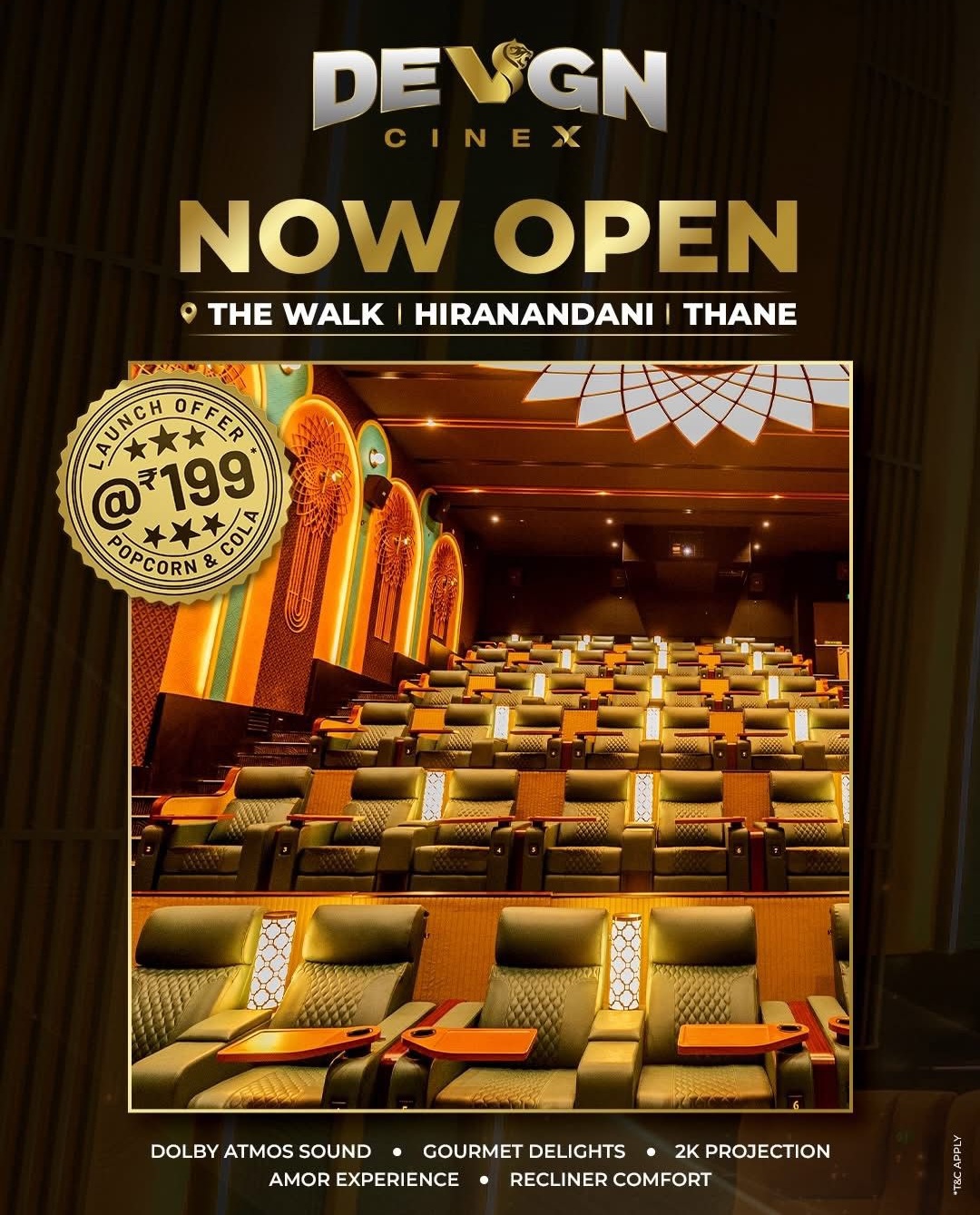 News 5-SCREEN DEVGN CINEX OPENS IN THANE | 19 March, 2026 By Film Information - March 19, 2026 Share FacebookPinterestTwitterWhatsApp A new Devgn Cinex property opened in Thane yesterday (18th March). The five-screen multiplex is located at Hiranandani Estate, Ghodbunder Road. Tickets were sold for just Rs. 199 as an introductory offer, with free popcorn and cold drink.